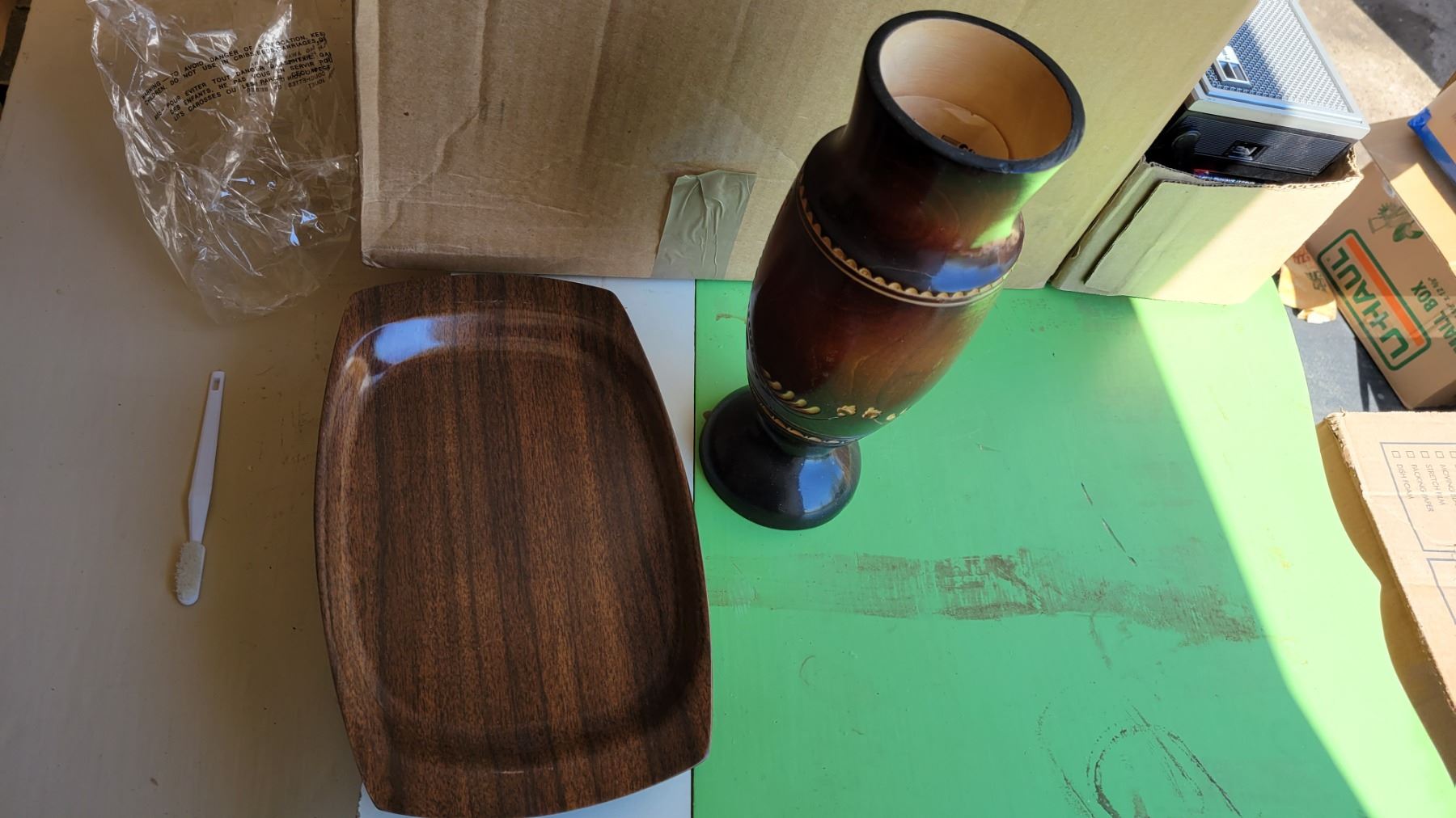 Decorative Wood Vase and Pyrex Tray