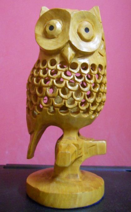Decorative Wooden Owl with baby inside Statue Size: 6 inches