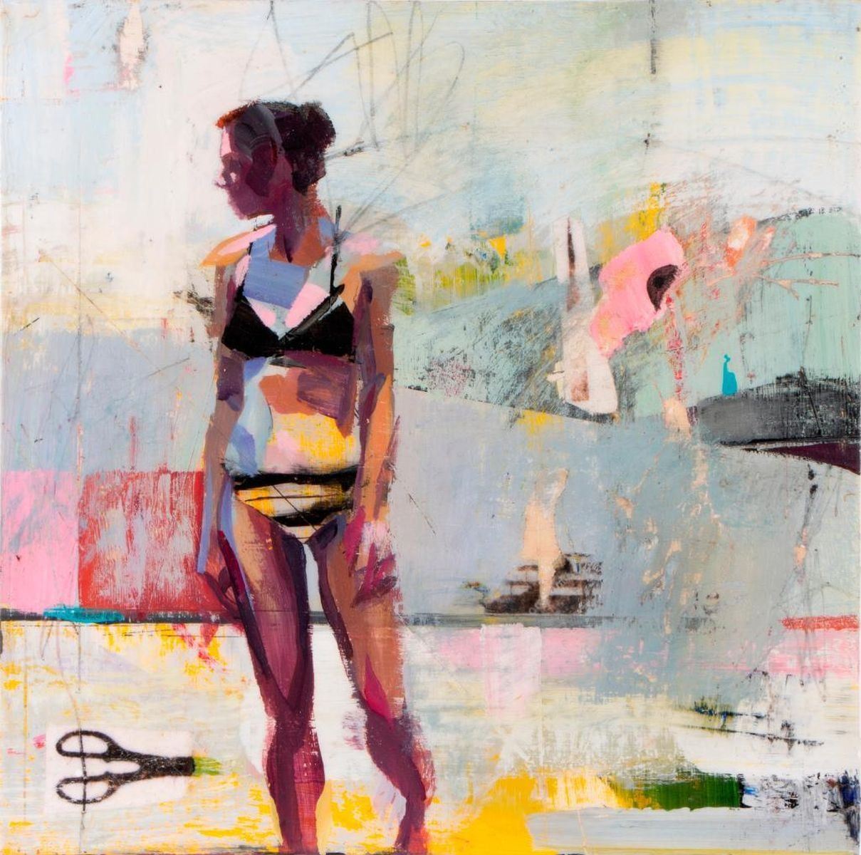 Decorative mixed media on panel by Gabriel Mark Lipper. Height: 12 1/4 inches. Width: 12 1/4 inches.