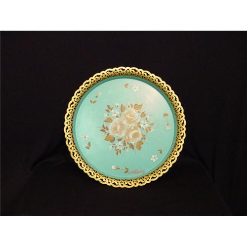 Art work hands painted dekorative and serving pierced tray rich master painted work diameter 14 3/4".
