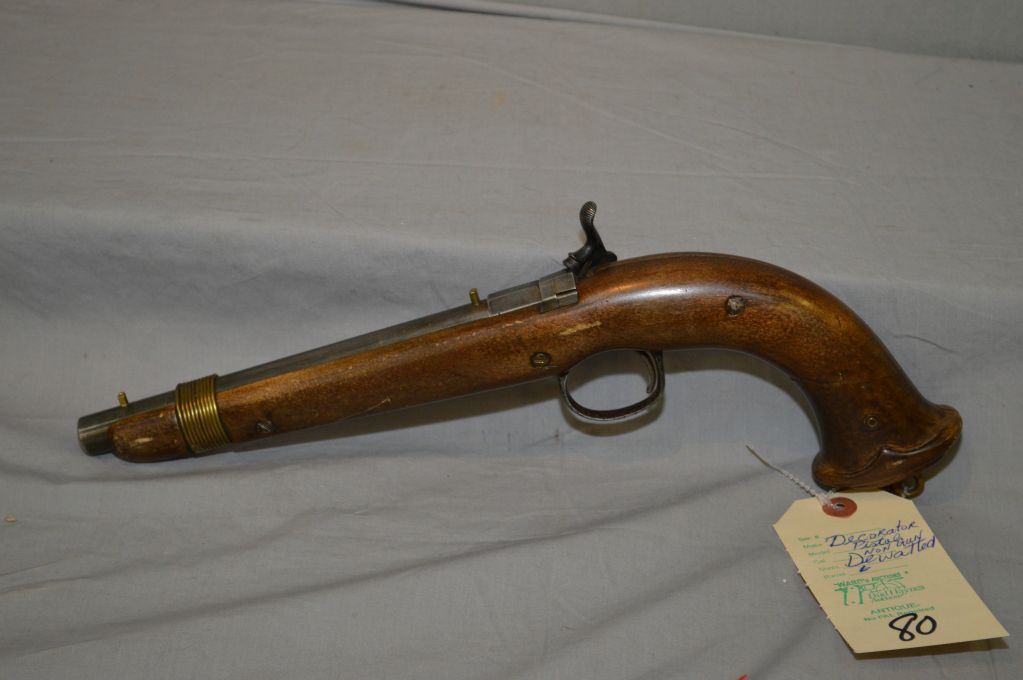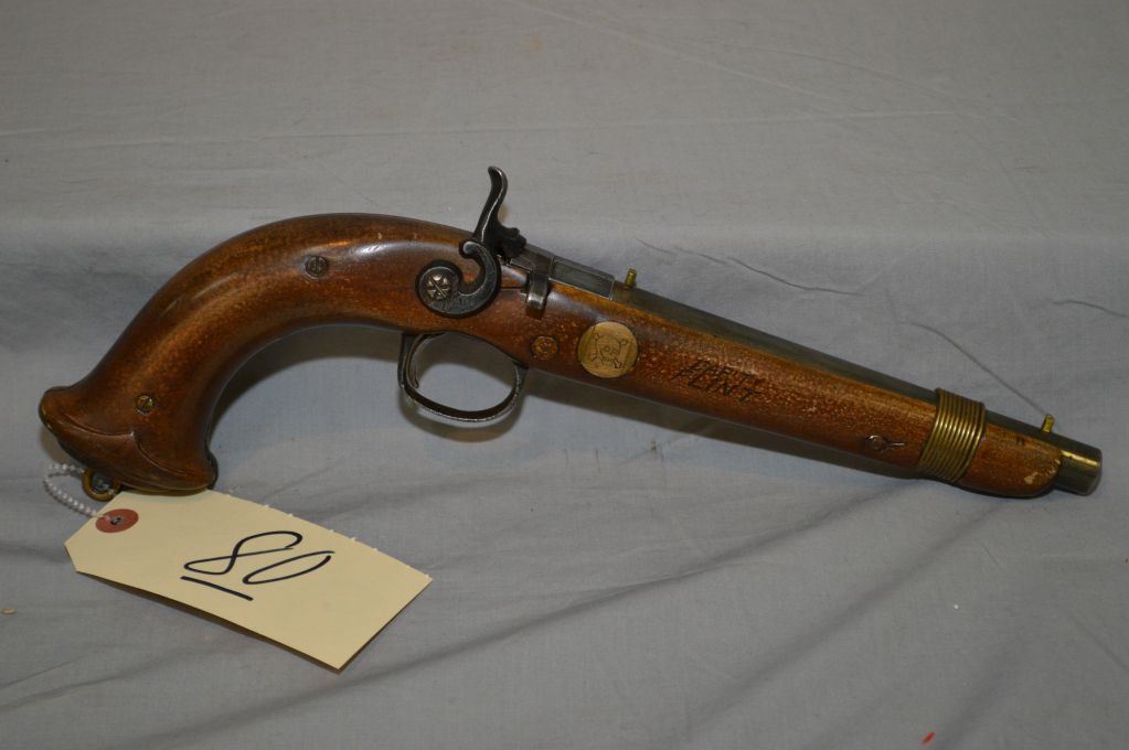 Decorator Pistol - Home Made Non Firearm Percussion Style Pistol [ welded barrel, solid flip block, hammer functions, wood marked Capt' Flint w/ skull & cross bone brass inlay ] NO PAL REQ