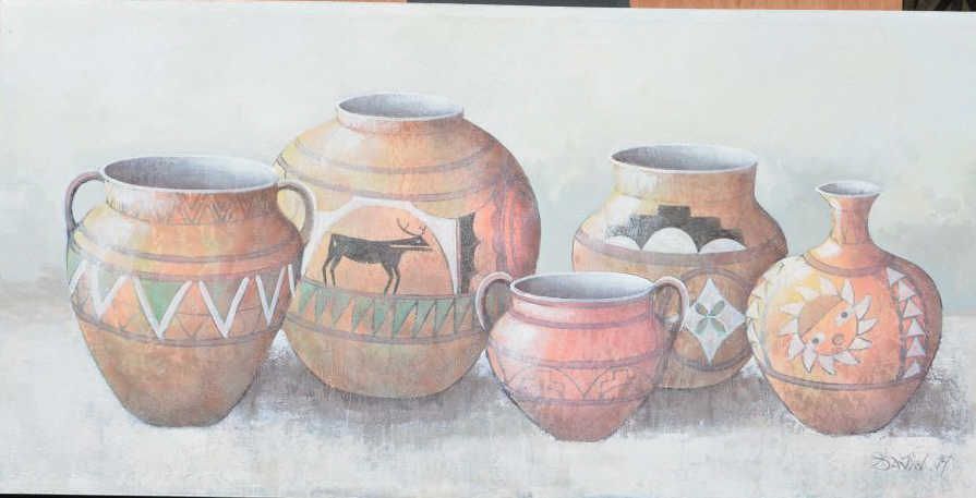 Decorator oil on canvas for Southwest décor signed David H. lower right corner, 30” x 60” unframed. Est.: $100-$300.