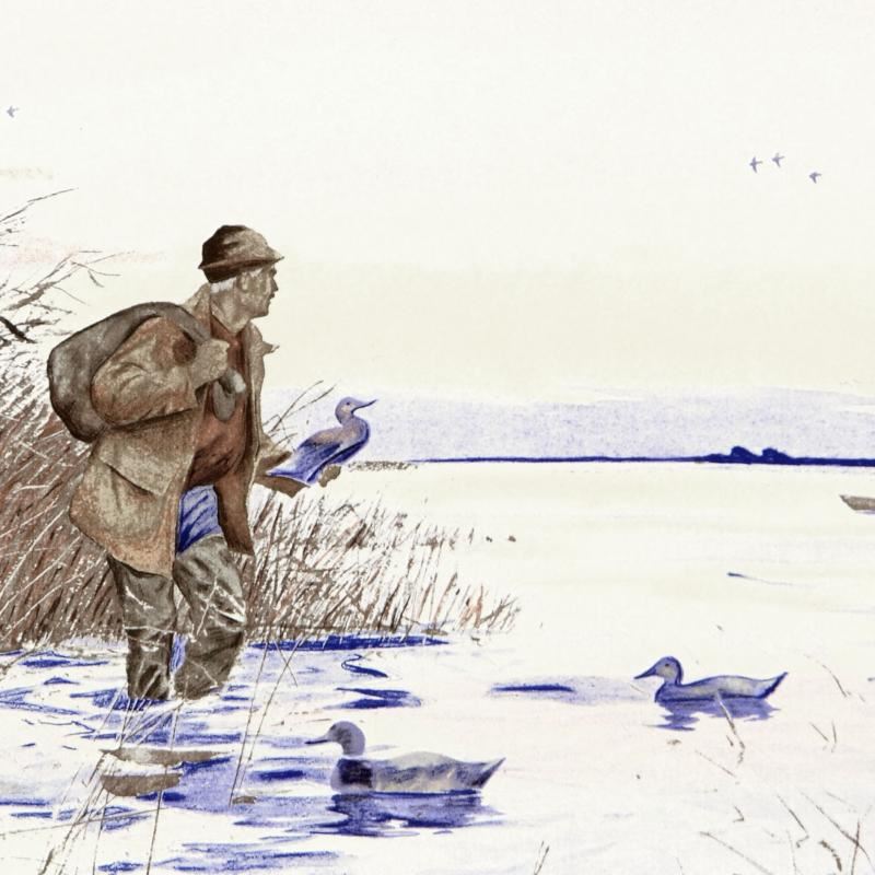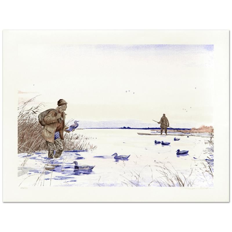 "Decoys" is a limited edition lithograph on paper by William Nelson, numbered and hand signed by the artist! Measures approx. 29" x 22" (with border); 25" x 18" (image).