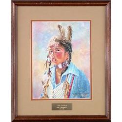 Dee Altimirano, Watercolor, "Two Feathers," 1983, 12" x 9", signed lower right, Est $500 - $750
