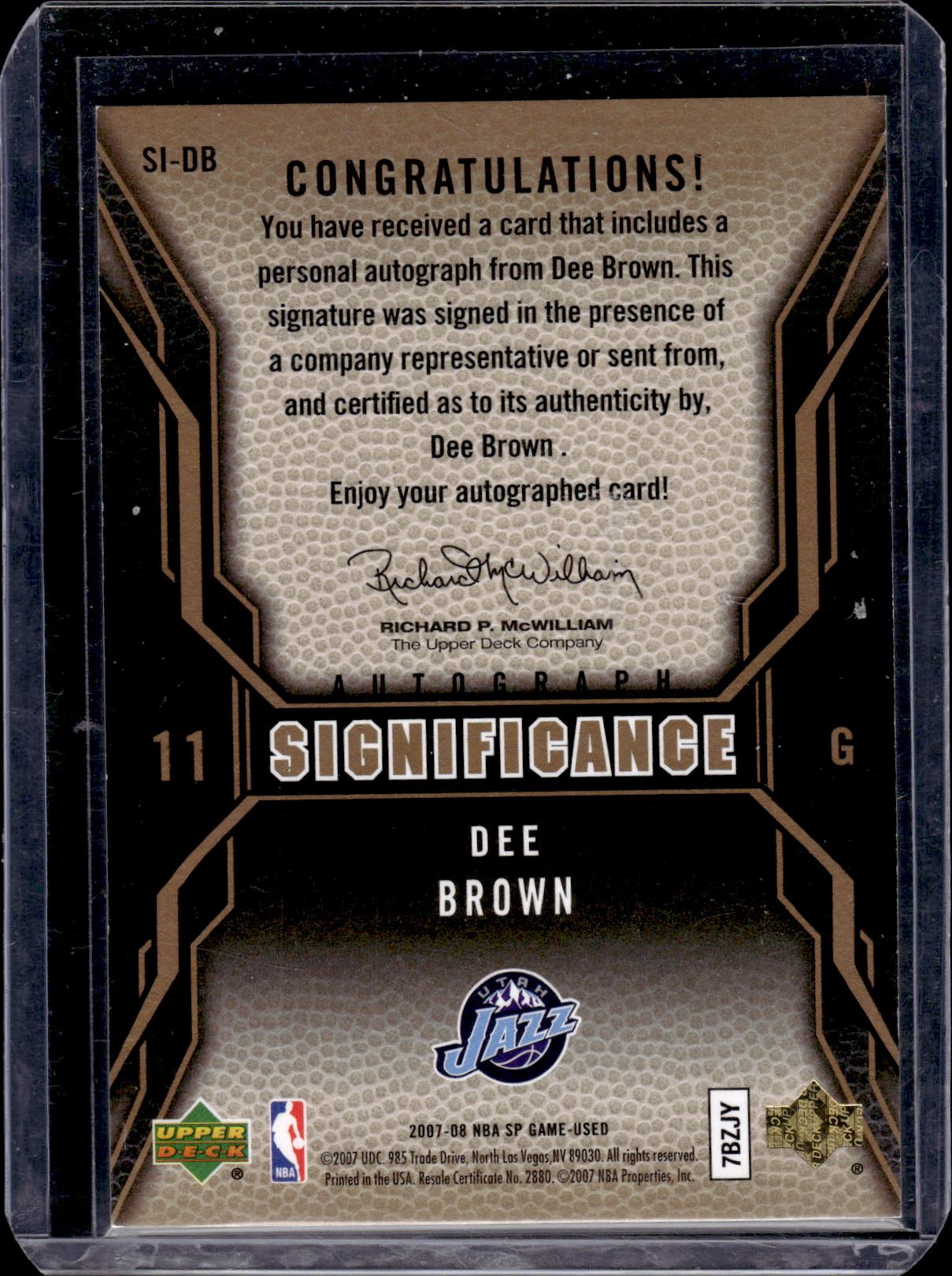 Dee Brown Auto 2007-08 SP Game-Used #SI-DB