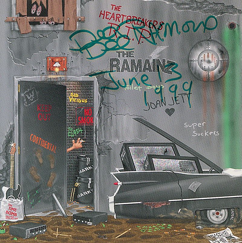 The Remainz: Live in NYC CD signed on the back cover of the booklet in green felt tip, “Dee Dee Ramone, June 13, 1999.” Trivial haloing to the signature, otherwise fine condition. The CD is included. A bold, strong and nicely dated example of Dee Dee’s script.