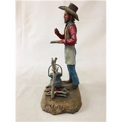 Description: A highly detailed, original wood carving of a chuck wagon cook, created by the well-kno... Show more..