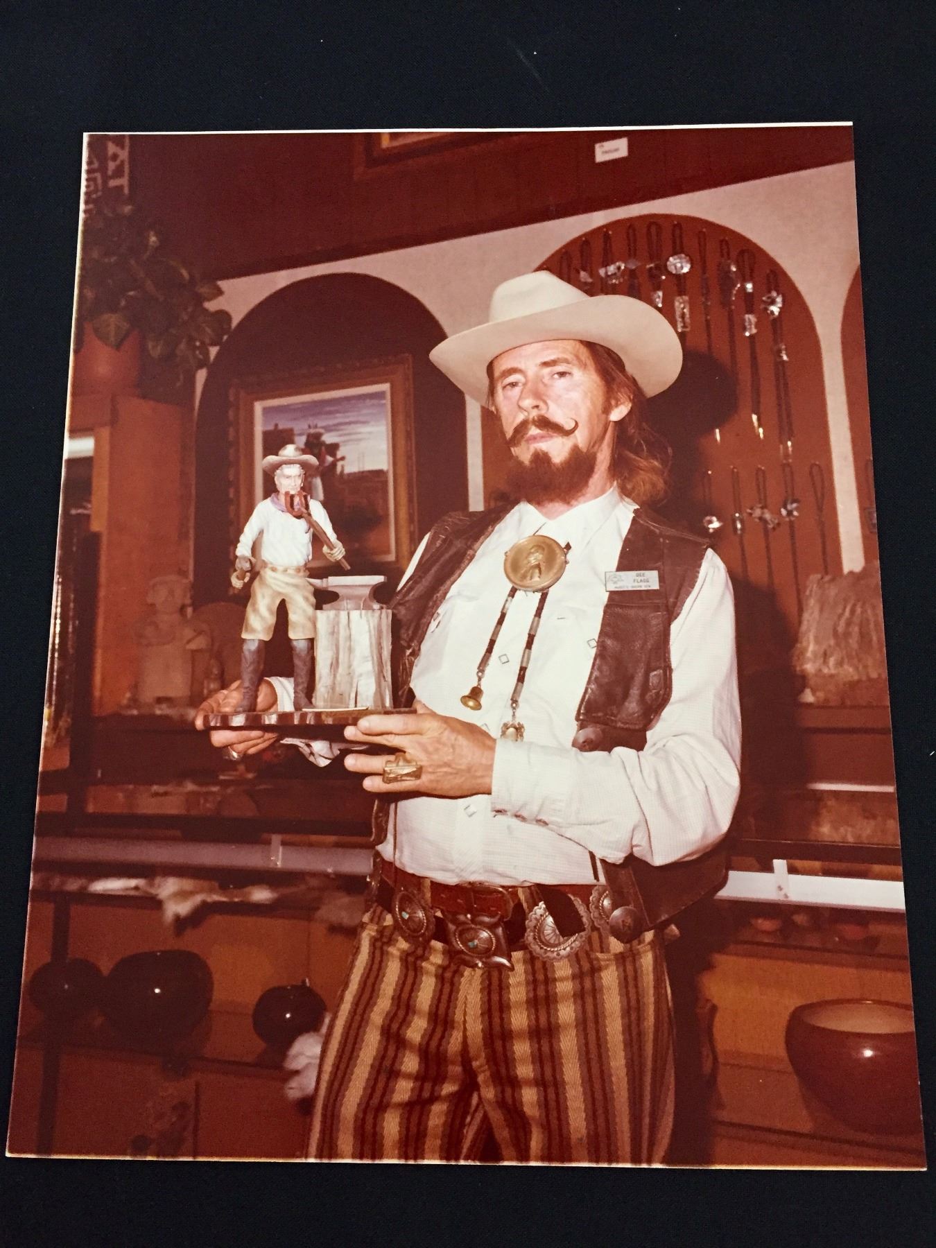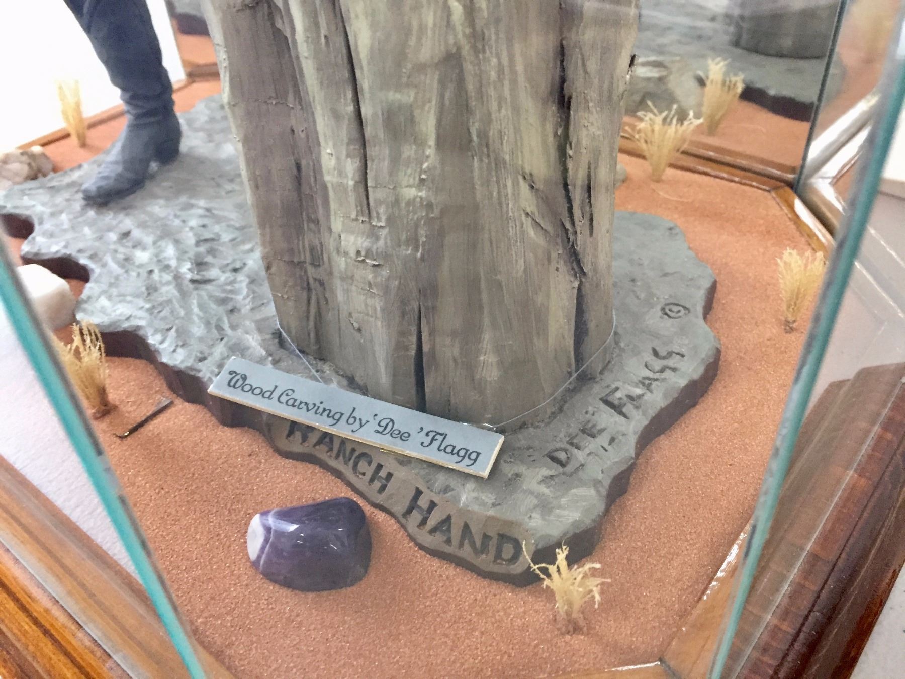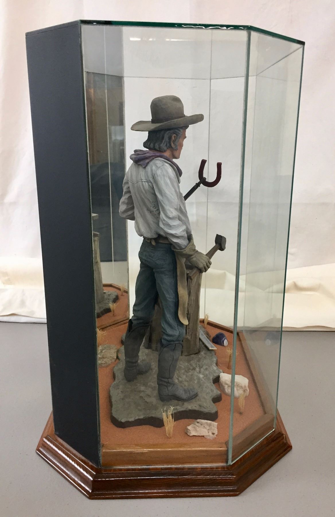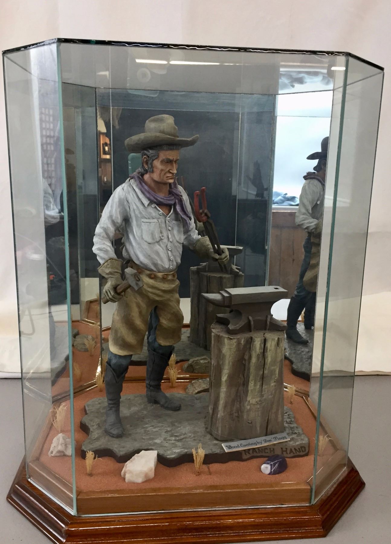 Description: An original Dee Flagg wood carving with a case, featuring a ranch hand working. The carving work on this figure is extremely detailed. Comes with a photo of the artists from when it was purchased in the 1980s. Maker: Dee Flagg (1922-1999). Approx. Age: 1980s. Size: 14-1/2”h x 16-3/8”h, 11-1/2” front to back. Figure inside approx. 13-1/2” tall. Condition: Good for its age, normal wear expected. Please look closely at the pictures - they are an important part of our description. Shipping: There will be a $15 handling / packaging fee for shipping this lot. The actual cost of postage will be added on top of that.