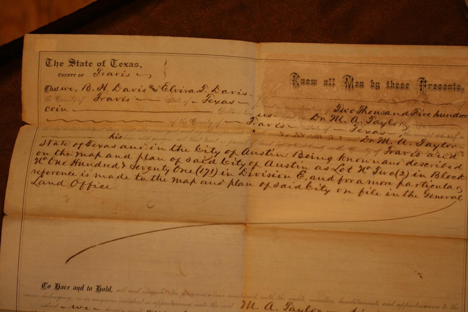 Up for your consideration is a Travis Co. Deed. Please study the picture carefully before you place your bid. I am not a professional coin dealer or grader.