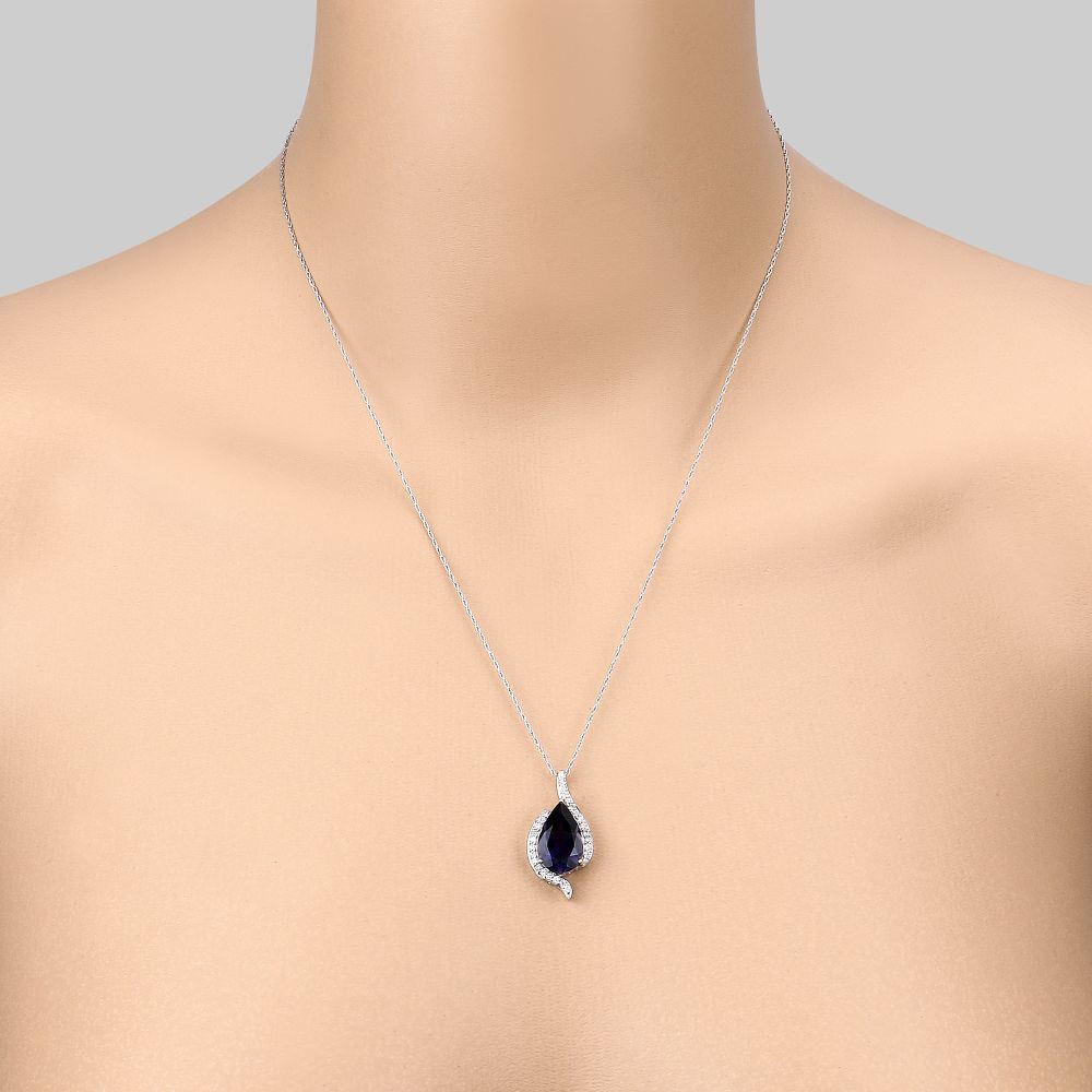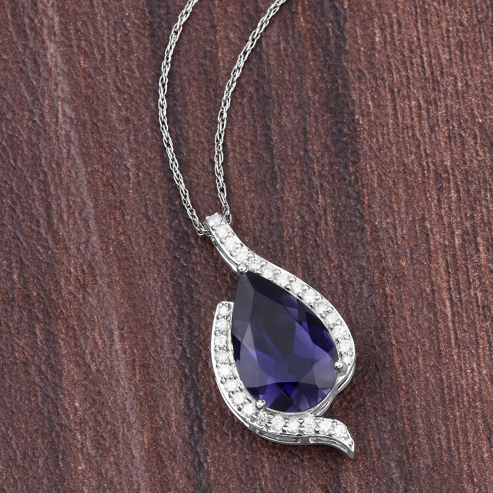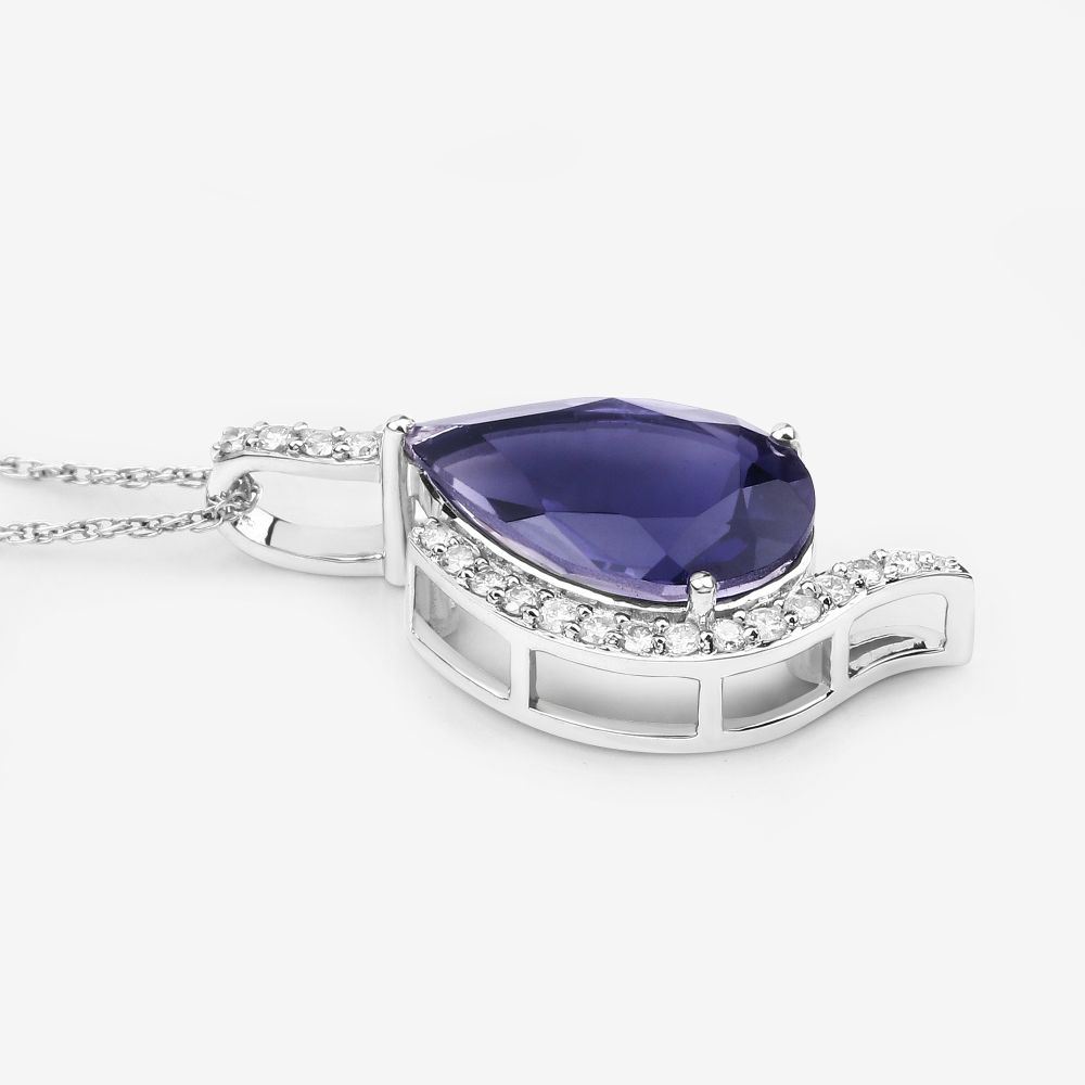 DESCRIPTION DETAIL: Genuine Iolite and Earth-Mined Diamond Pendant. This Iolite is gem quality and very deep blue in color.