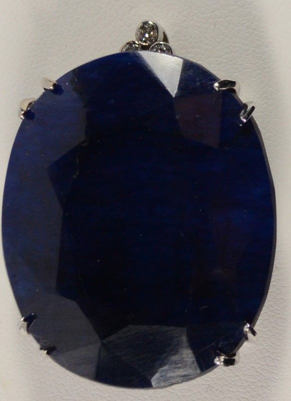 This Enormous Pendant measures 1.5" x 1.25"!!!  87.51 CT with three Diamonds at the top.  Set in 14K White Gold.  Est. $3500-$4000