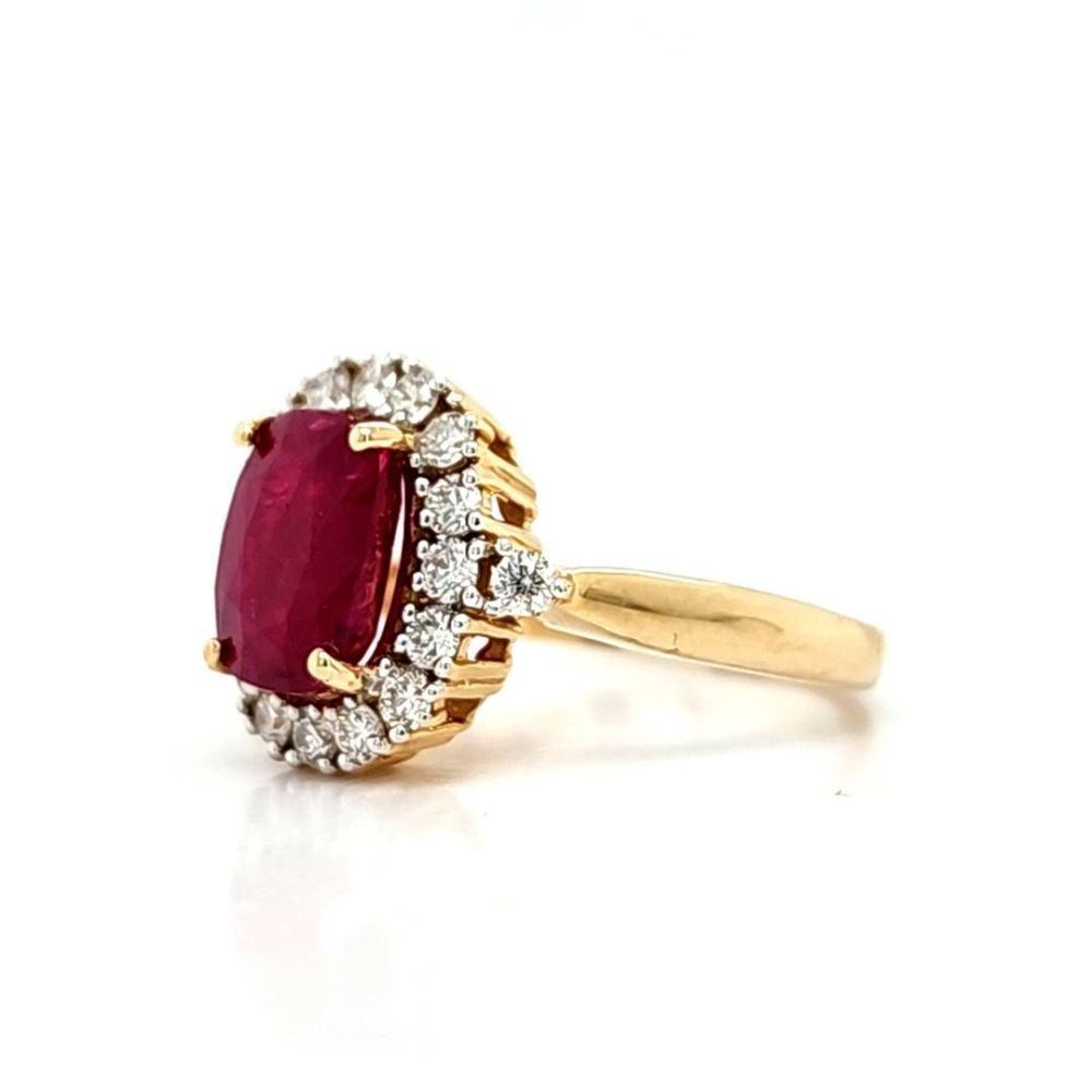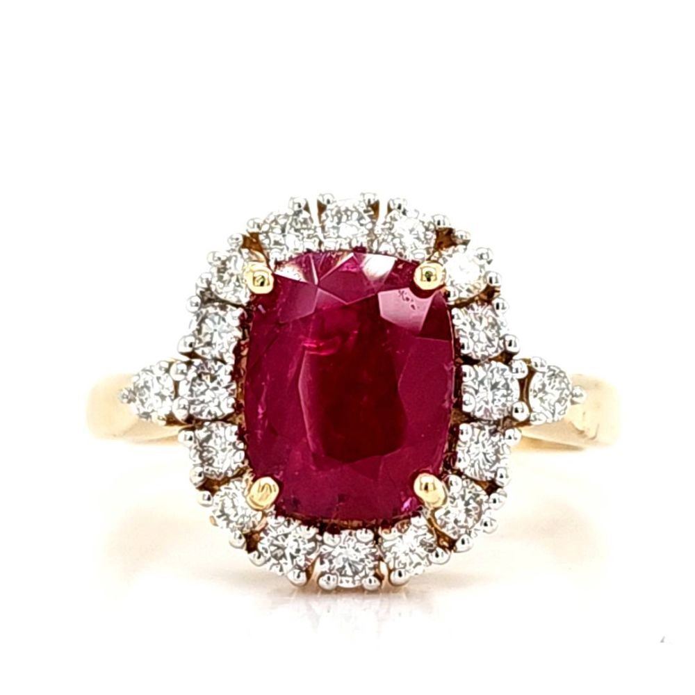 TITLE DESCRIPTION: Deep Red Ruby and Impressive Diamond Halo Ring