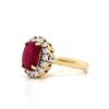 ADDITIONAL INFORMATION: The cushion-cut ruby is prong-set with round, brilliant-cut diamonds in the impressive halo. The ring has an approximate 2.2mm shank and diamond-topped cathedral shoulders.