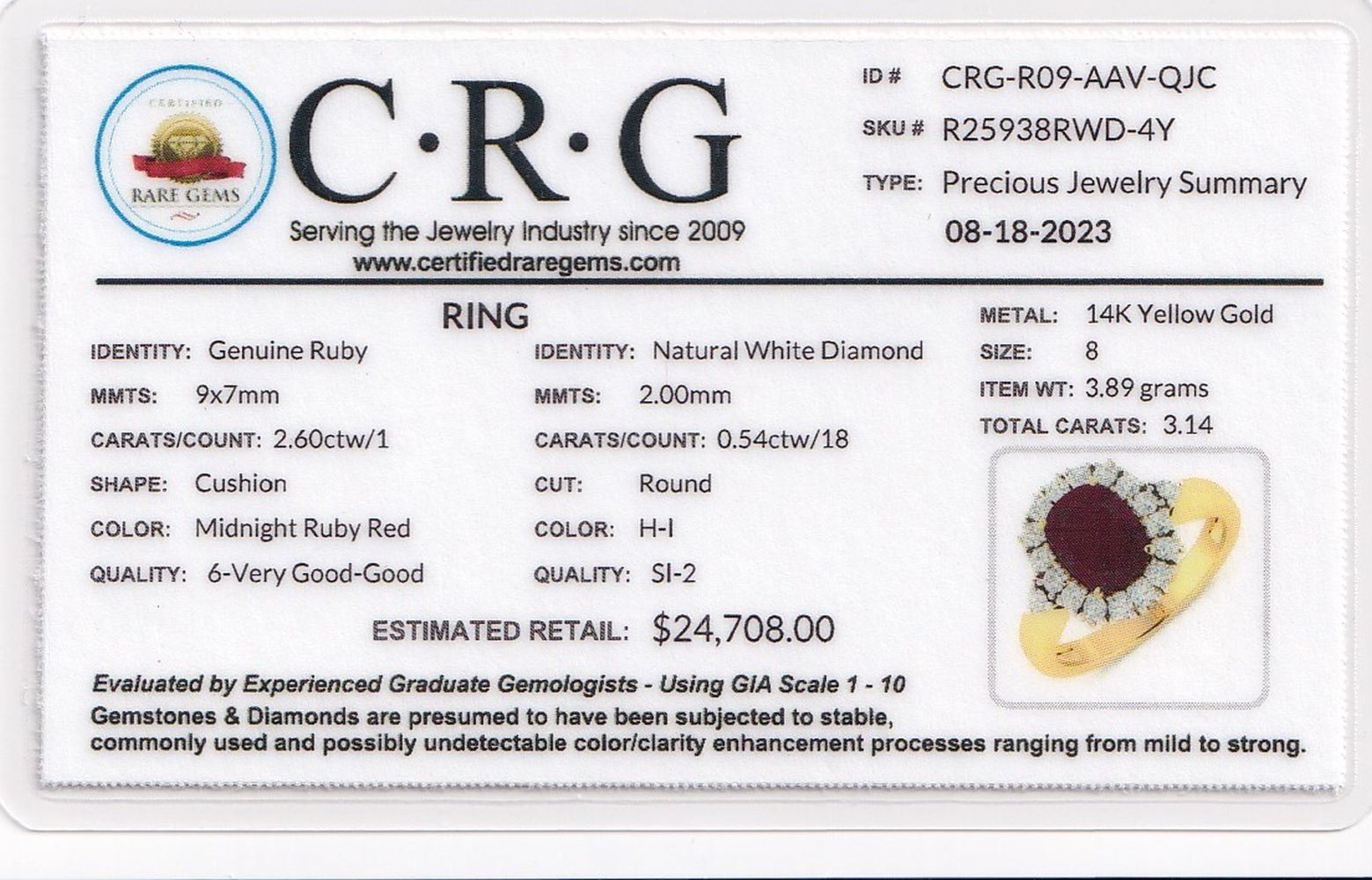 DESCRIPTION DETAIL: Genuine Ruby and Earth-Mined Diamond Ring.& nbsp;
