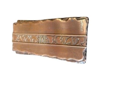 Deep Space Nine (1993-1999) Latinum pressed bar, made of durable cast resin, this detailed prop replica was created from an unknown mold. The intricate design captures the iconic currency of the Ferengi Alliance. Color is bronze (approximately 5" x 2 1/4").