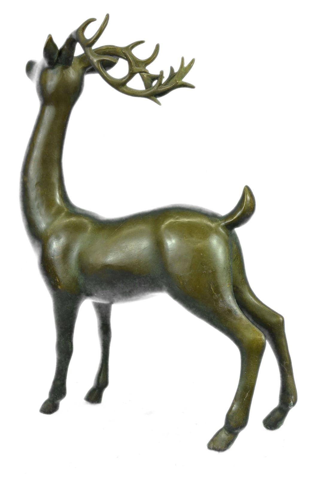 The male deer comes down the forest's edge offering a series ofvocalizations for the mountains to echo across the sky and lands. Heseems as though he is on a mission to find a mate. His crown of tallantlers will be used to for sparring antler wrestling with another male to gain the rights of dominance and courtship with the desiredfemale. The handmade bronze sculpture was cast using the ageoldmethod of lostwax casting and stained with a brown patina finish forperpetuation. He is mounted upon a black circular marble base. Bronze Dimensions with Marble Base: Height 17 X Width 20 inches. Weight: 12 LBS. Inventory: 71X2026B5317