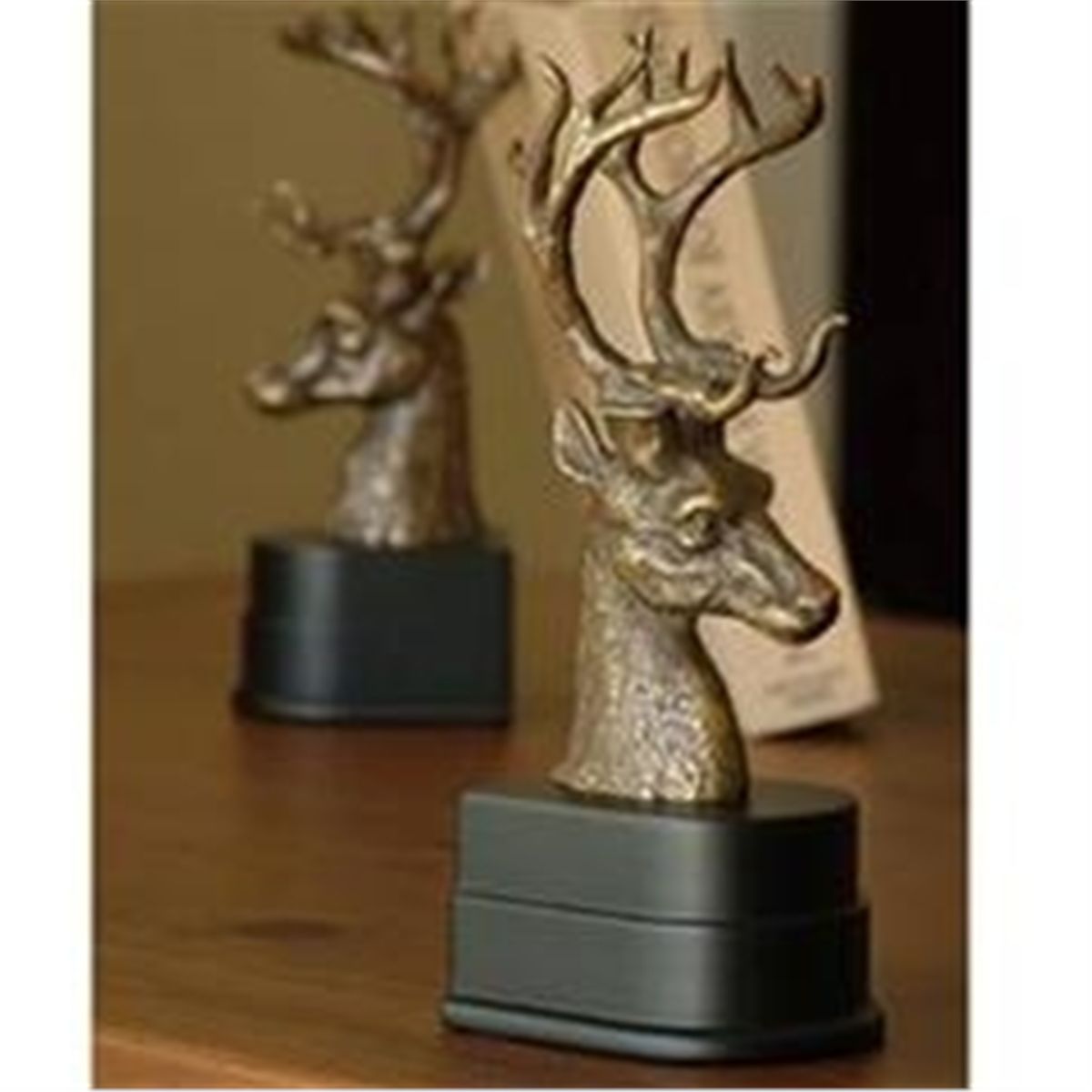 Deer Head Bookends - 12h 4.5w - Brass On Wood Bases