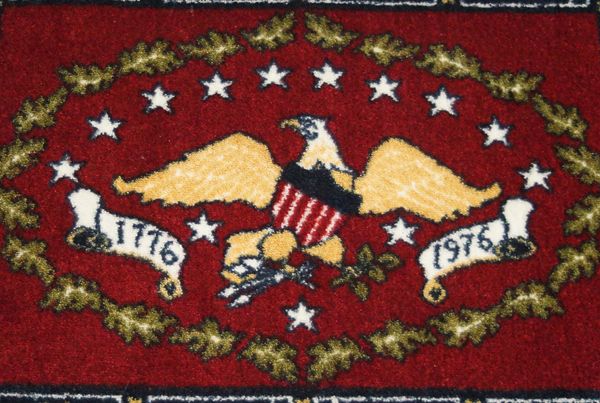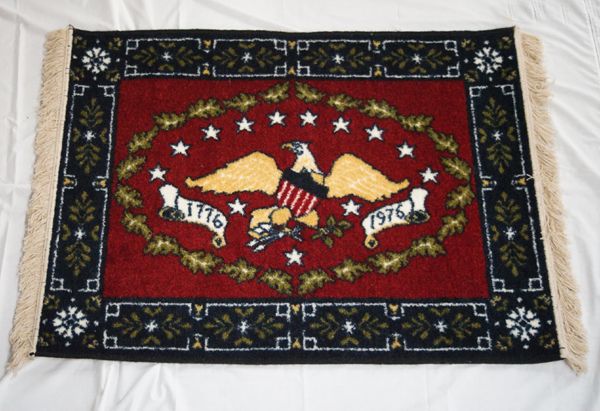 Deering Milliken Inc. Bi-Centennial 1776-1976 Commemorative Rug, measures 34''W X 52''L, Pattern: 4605, Color: #1 fourth of July, Pile: 100% Nylon Fiber Face