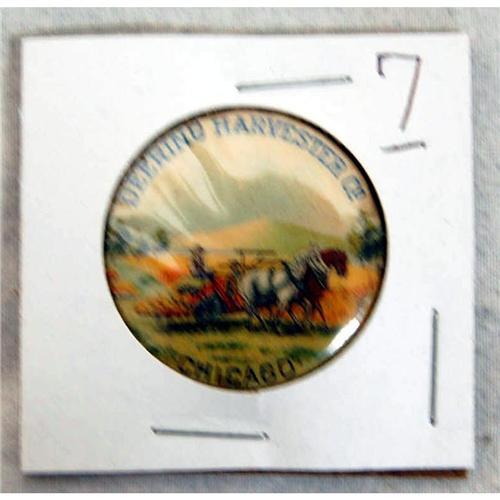 Deering celluloid pin back, binder