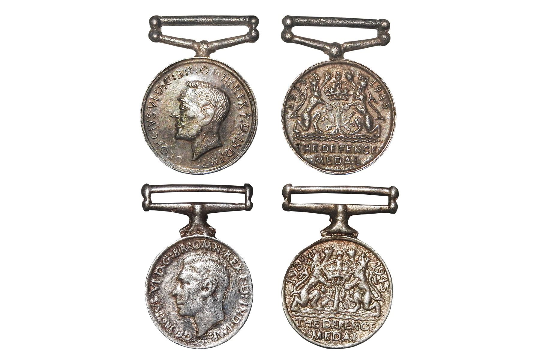 India, Defence Medal World War-II, Miniature Medal – (2), Silver, 4.00 grams & 3.40 grams. Extra Fine.