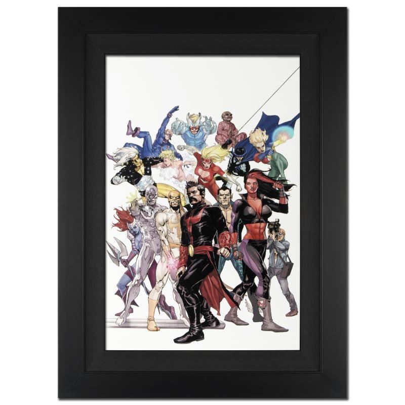 A piece of comic book history, this limited edition, from original art by Leinil Francis Yu, depicts a heroic Marvel team. After winning the Wizard's Drawing Board Contest, Marvel Comics hired Leinil Francis Yu to work on the Wolverine series. After his run on Wolverine, he moved on to work on Marvel's core X-Men title in 2000. Yu continued to work on other Marvel titles such as Fantastic Four, Ultimate Wolverine vs. Hulk and New Avengers. "Defenders: Strange Heroes #1" is a limited edition giclee on canvas by Leinil Francis Yu presented by Marvel Comics, hand signed by the great Stan Lee and numbered out of only 10! This piece has been custom framed and ready to hang. Includes Certificate of Authenticity! Measure approx. 25" x 34" (with frame); 18" x 27" (image).