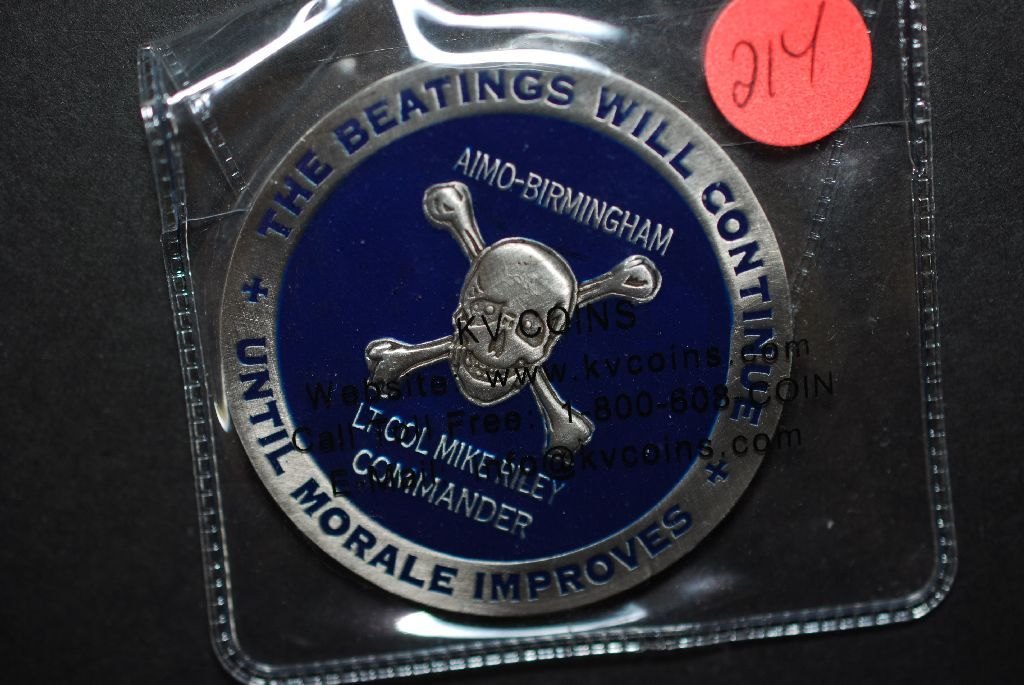 Defense Contract Management Agency Depart Of Defense Military Challenge Coin; The Beatings Will Continue Until Morale Improves; AIMO-Birmingham Lt. Col Mike Riley Commander; EST. $5-10