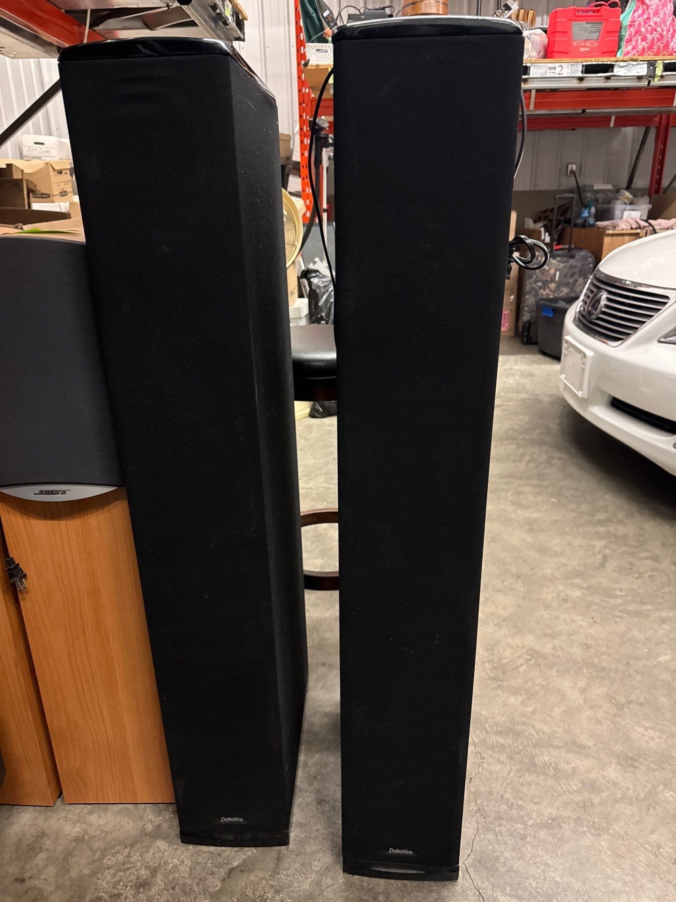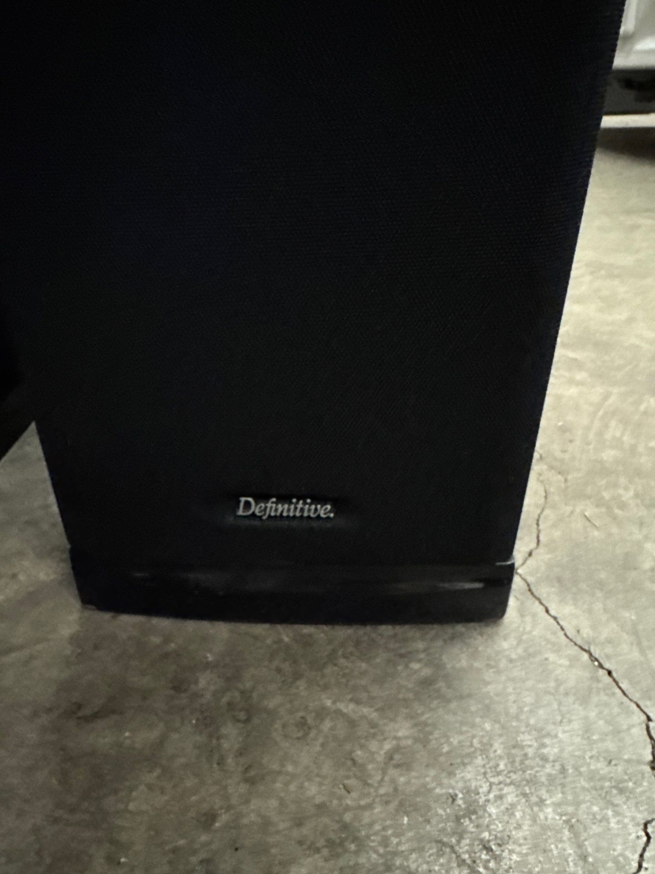 Definitive tower speakers. 46 and a half inches tall. 16 inches deep. Seven and a half inches wide