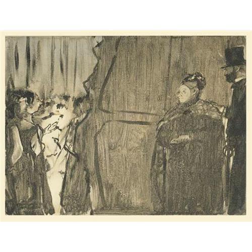 Degas 1st Edition soft-ground ETCHING.<p> Etchings from this suite are particularly important because many of the etchings after the original monotypes of Edgar Degas have vanished. Edgar Degas Etchings from this suite remain the only documentation of their existence! Edgar Degas created monotypes to illustrate La Famille Cardinal, Ludovic Halvy's collection of short stories documenting the backstage life of Pauline and Virginie Cardinal at the Paris Opra. In 1938 the monotypes were finally published by Blaizot as etching illustrations. These etchings have been documented by leading Degas scholars Adhemar and Cachin, E. P. Janis and Jean Boggs. The edition is limited to only 350 copies , printed on Velin de Rives paper, with watermarks BFK Rives and Blaizot Editeur. Full Margins as issued. Condition: Excellent, no damage or repairs. References: Monod no.5797; Adhemar pp.274-276; The Artist The Book no.71; Skira no.58; Stern no.25; From Manet to Hockney no.3. <p>The monotypes were created by Degas in 1880, but these legendary Etchings were not published until 1938. This very attractive black and white etching was hand-pulled by Maurice Potin, Paris 1938. The full size is 9.75 x 12.75, Plate Size: 8.25 x 6.25. A copy of the original Justification du Tirage (original Certificate of Authenticity issued by a publisher in French) will be included. Edgar Degas is known for his unique off-center composition and perceptive analysis of movement, Degas was one of the masters of modern ...