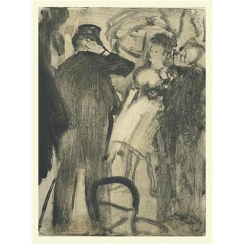 Degas 1st Edition soft-ground ETCHING. <p>Etchings from this suite are particularly important because many of the etchings after the original monotypes of Edgar Degas have vanished. <p>Edgar Degas Etchings from this suite remain the only documentation of their existence! <p>Edgar Degas created monotypes to illustrate La Famille Cardinal, Ludovic Halvy's collection of short stories documenting the backstage life of Pauline and Virginie Cardinal at the Paris Opra. In 1938 the monotypes were finally published by Blaizot as etching illustrations. These etchings have been documented by leading Degas scholars Adhemar and Cachin, E. P. Janis and Jean Boggs. The edition is limited to only 350 copies , printed on Velin de Rives paper, with watermarks BFK Rives and Blaizot Editeur. Full Margins as issued. Condition: Excellent, no damage or repairs. References: Monod no.5797; Adhemar pp.274-276; The Artist The Book no.71; Skira no.58; Stern no.25; From Manet to Hockney no.3. <p>The monotypes were created by Degas in 1880, but these legendary Etchings were not published until 1938. This very attractive black and white etching was hand-pulled by Maurice Potin, Paris 1938. The full size is 9.75 x 12.75, Plate Size: 6 1/4 x 8 1/4. A copy of the original Justification du Tirage (original Certificate of Authenticity issued by a publisher in French) will be included. <p>Edgar Degas is known for his unique off-center composition and perceptive analysis of movement, Degas was one of the masters ...
