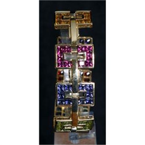 <tr><td>Title:Deigner Multi Gem Yellow Gold Link Bracelet 14k</td></tr>