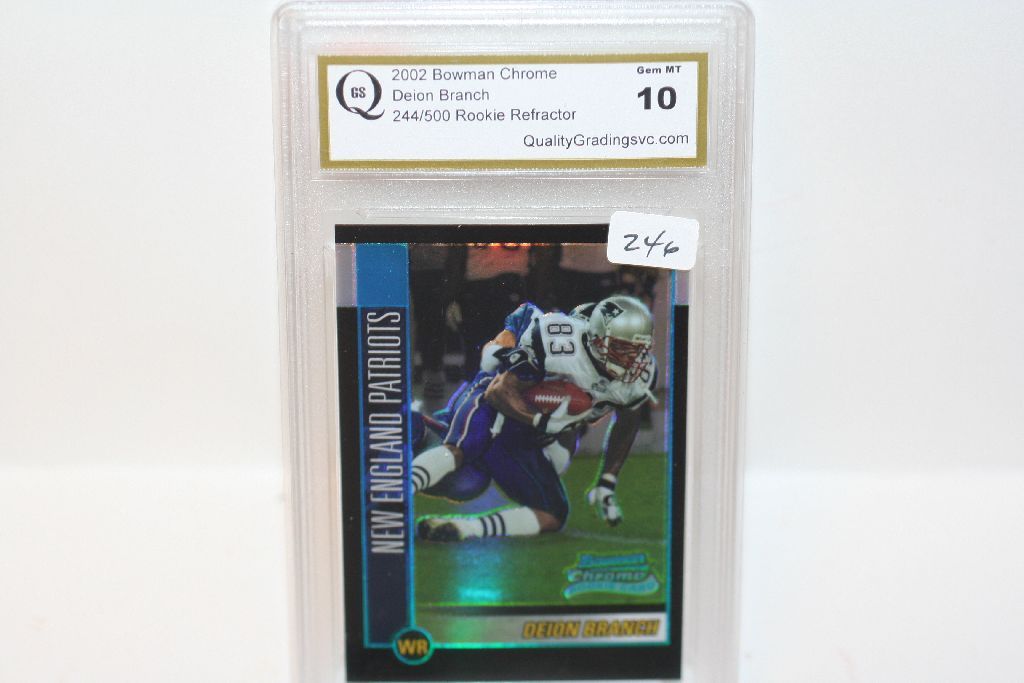 This lot is a quality grading 2002 bowman chrome deion branch rookie refractor sports card; Gem Mt 10