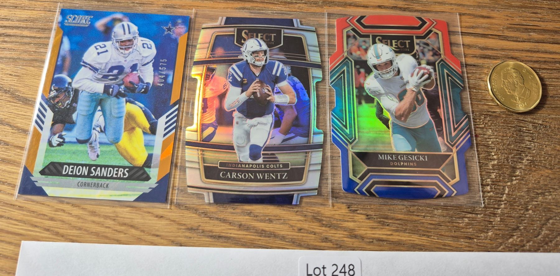 Three-card lot mixing a Score base/insert with two Select Prizm cards, including a die-cut. Numbered 404/575