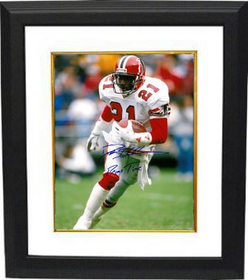 At the 1989 NFL Scouting Combine, Deion Sanders ran a 4.21 second 40-yard dash, which was considered to be second in Combine history behind Bo Jackson. He was the fifth pick overall in the 1989 NFL Draft by the Atlanta Falcons, where he played until 1993. Sanders returned his first career punt return for a touchdown. During his time in Atlanta, he intercepted 24 passes (including a career high 7 in 1993), three of which he returned for touchdowns. Deion Sanders has hand signed this Atlanta Falcons 16x20 Photo with Prime Time inscription. Certificate of Authenticity from Athlon Sports. Custom White Mat and Premium Black Color Framed as shown.