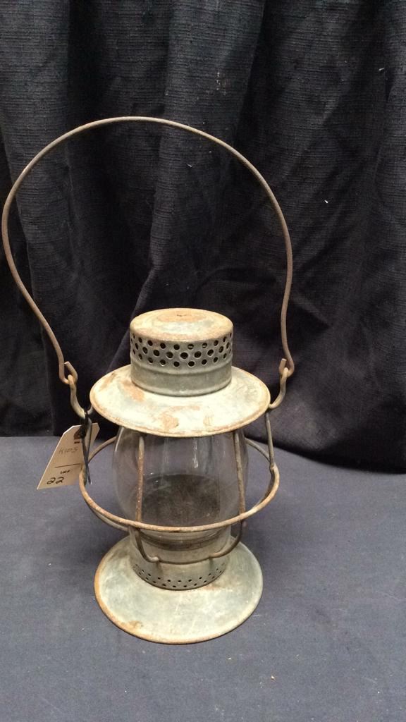 Deitz Bell Bottom Lantern Clear globe marked with Vulc N New York with worn out dietz marking