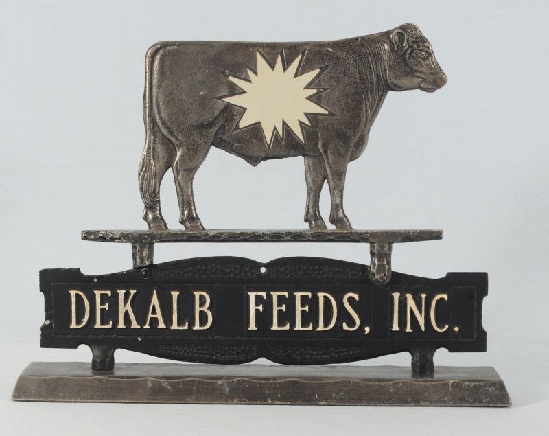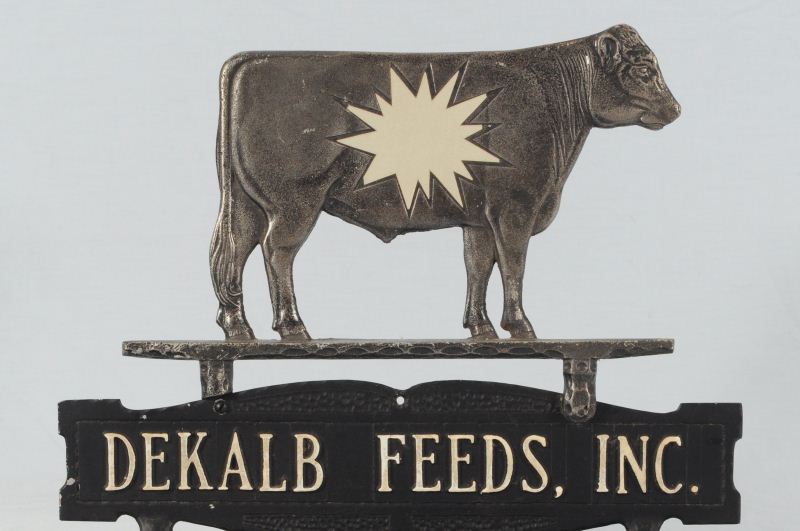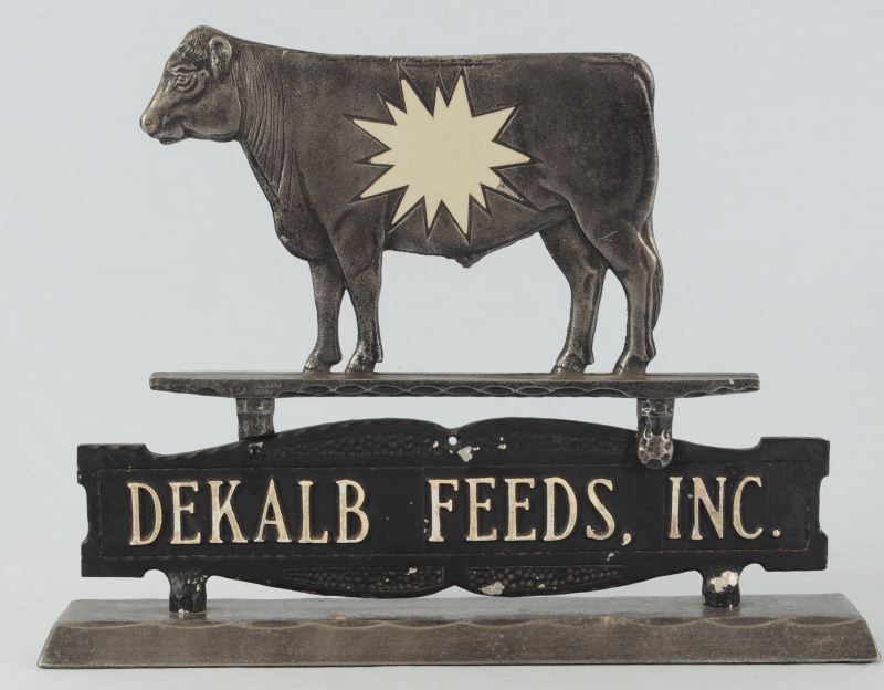 Countertop sign with well made figural cow on nice base. All original. Measures 12" x 16"