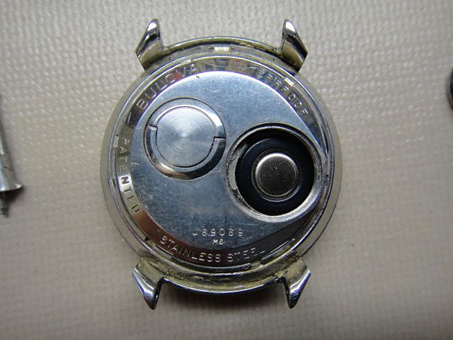 The current watch is correctly regulated for the modern 387S battery, which is actually a 394 in protective insulated ring. Use of the ring is critical to keeping the battery in position and preventing the battery from draining away. One can replace the battery with the 394 if the ring is kept with it, always making sure that the positive side is down within the battery chamber. The natural contours of the insulator allow the battery to fall in naturally in correct position. The watch was found in Slayton's jewelry box after his passing, and was undoubtedly worn by him during the 1960s when the watch was state of the art.
