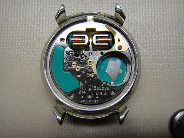 The current watch is correctly regulated for the modern 387S battery, which is actually a 394 in protective insulated ring. Use of the ring is critical to keeping the battery in position and preventing the battery from draining away. One can replace the battery with the 394 if the ring is kept with it, always making sure that the positive side is down within the battery chamber. The natural contours of the insulator allow the battery to fall in naturally in correct position. The watch was found in Slayton's jewelry box after his passing, and was undoubtedly worn by him during the 1960s when the watch was state of the art.