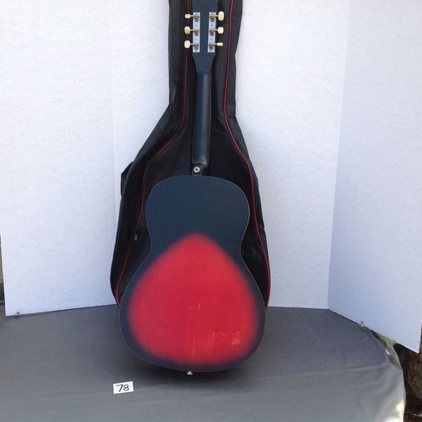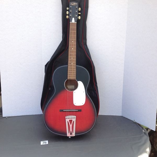 Mid/Late 1900s 36" Beautiful, flat top box style six-string guitar with steel reinforced neck, the model G-100 with 15" fret board and 17" x 13" x 3-1/4" body. Very good, playable condition.