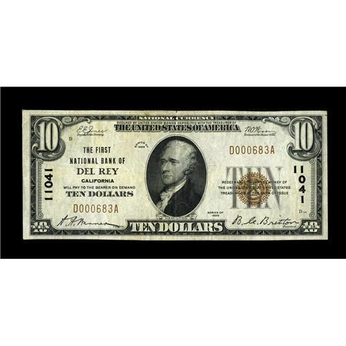 Del Rey, CA - $10 1929 Ty. 1 The First NB Ch. # 11041Th