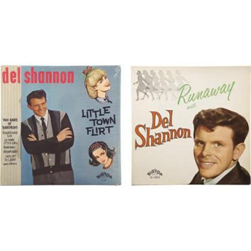 <B>Del Shannon Mono LP Group of Two (Big Top 1303 and 1308, 1961-63).</B></I> "Runaway" and "Little Town Flirt" were the first two albums by one of Rock's most distinguished voices and featured five of Del Shannon's first seven Billboard Hot 100 chart hits, including the classic "Runaway," "Hats Off to Larry," and "Little Town Flirt." You'll be hard-pressed to find nicer copies of these early '60s gems -- "Runaway" is EX 7/ EX 7, and "Little Town Flirt" is NM 8 (still in shrinkwrap but opened)/ EX 7.<BR><BR><b>Shipping:</b> Recordings (<a target="_blank" href="http://www.heritageauctions.com/common/shipping.php">view shipping information</a>)