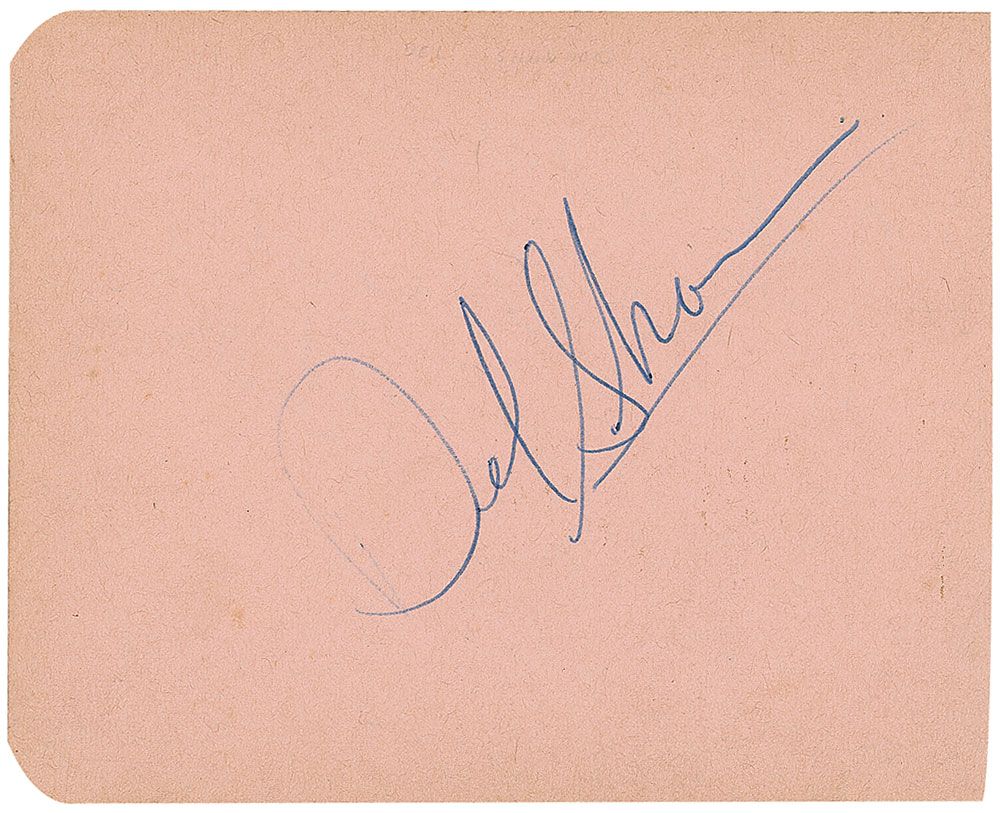Vintage ballpoint signature, “Del Shannon,” on a pink 4.75 x 3.75 album page. In fine condition, with mild scattered toning and soiling.