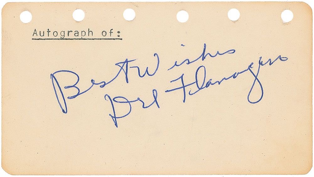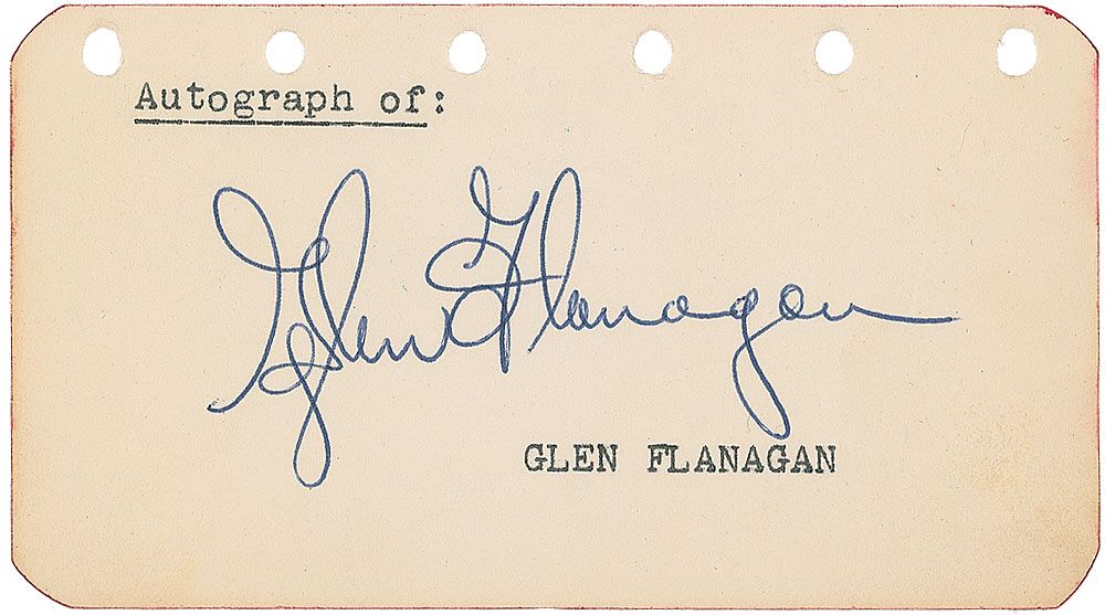 Professional boxing brothers from Minnesota who are both members of the World Boxing Hall of Fame. Vintage ballpoint signatures, “Best Wishes, Del Flanagan” and “Glen Flanagan,” on individual off-white 4.5 x 2.5 pages. In overall fine condition.