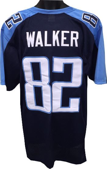 Delanie Walker had a career year during the 2015 season, shattering all Titans records for a tight end, including 1,088 yards receiving. He had previously broken the Titans' tight end receiving yards record in the 2014 season with 890 yards. Walker led all NFL tight ends with 94 receptions, and became only the ninth tight end to ever record 90+ catches in a single season. He was later named to his first career Pro Bowl.On May 6, 2016, the Titans announced a two-year contract extension worth $14.7 million with $8.2 million in guarantees.This is a Delanie Walker Tennessee Titans unsigned Navy unlicensed custom-prostyle jersey with twill stitched nameplate and numbers. perfect for autograph or to wear! Size XL