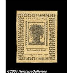Delaware January 1, 1776 10s Gem New. Another broadly margined beauty, with excellent printing quality and terrific eye appeal. Ideally centered on both sides. <BR><BR><B>Important notice:</B> Heritage usually auctions material at the rate of 200-250 lots per hour. On some occasions eBay Live bid software or the Internet may not be able to keep up with the pace of the auction. We recommend placing a realistic absentee bid now as insurance to avoid disappointment. Occasionally the auctioneer may eliminate or reject an eBay Live bid, and the auctioneer may also reopen a lot after the close of the eBay live bidding (usually because we missed an audience bid), and may reject your bid even if it shows you as the winning bidder. By bidding via eBay Live, you agree that Heritage may award the lot to another bidder at its sole discretion under the circumstances described above or any other reasonable circumstances. Since eBay bids are not shown to us until we open the lot on the floor, we treat those bids just like floor bids. In most cases the floor responds before the eBay bid is presented to us, due to Internet lag time, so for consistency we have made it a policy that floor bids are always considered first over tie eBay live bids. Also please note that all Heritage lots purchased through eBay Live carry a 20% Buyer's Premium. Please make sure you read the Terms and Conditions before you bid. <BR><BR><B>IMPORTANT ANNOUNCEMENT ABOUT RESERVES:</B> Heritage now divulges all reserves on its web site 7 days before every auction. If you want to know whether the reserve on this lot has been met, and if not, what the reserve amount is, please visit this lot page on the HeritageCoin.com web site, or email: bid@HeritageGalleries.com