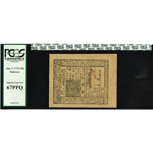 <B>Delaware January 1, 1776 10s PCGS Superb Gem New 67PPQ.</B></I> The paper quality and signatures for the age are excellent. In addition, the margins are broad and the printing deep.<BR><I>From The Troy Wiseman Collection</B></I>