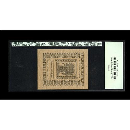 Delaware January 1, 1776 10s PCGS Superb Gem New 67PPQ.