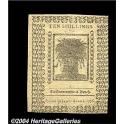 Delaware January 1, 1776 10s Very Choice New. The face margins are small but even, the back design is just touched by the margin at the right. <BR><BR><B>Important notice:</B> Heritage usually auctions material at the rate of 200-250 lots per hour. On some occasions eBay Live bid software or the Internet may not be able to keep up with the pace of the auction. We recommend placing a realistic absentee bid now as insurance to avoid disappointment. Occasionally the auctioneer may eliminate or reject an eBay Live bid, and the auctioneer may also reopen a lot after the close of the eBay live bidding (usually because we missed an audience bid), and may reject your bid even if it shows you as the winning bidder. By bidding via eBay Live, you agree that Heritage may award the lot to another bidder at its sole discretion under the circumstances described above or any other reasonable circumstances. Since eBay bids are not shown to us until we open the lot on the floor, we treat those bids just like floor bids. In most cases the floor responds before the eBay bid is presented to us, due to Internet lag time, so for consistency we have made it a policy that floor bids are always considered first over tie eBay live bids. Also please note that all Heritage lots purchased through eBay Live carry a 20% Buyer's Premium. Please make sure you read the Terms and Conditions before you bid. <BR><BR><B>IMPORTANT ANNOUNCEMENT ABOUT RESERVES:</B> Heritage now divulges all reserves on its web site 7 days before every auction. If you want to know whether the reserve on this lot has been met, and if not, what the reserve amount is, please visit this lot page on the HeritageCoin.com web site, or email: bid@HeritageGalleries.com
