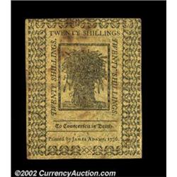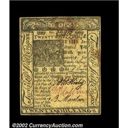 Delaware January 1, 1776 20s About New. There are a few age spots on this attractive Delaware example. Important notice: We expect to be auctioning lots at the rate of 200-250 per hour. Sometimes eBay Premier live bid software cannot keep up with that pace, so we strongly recommend that you place a realistic proxy bid now as insurance to avoid disappointment. Also please note that all Heritage/CAA lots purchased through eBay Premier carry a 20% Buyer's Premium. Please make sure you read the Terms and Conditions.