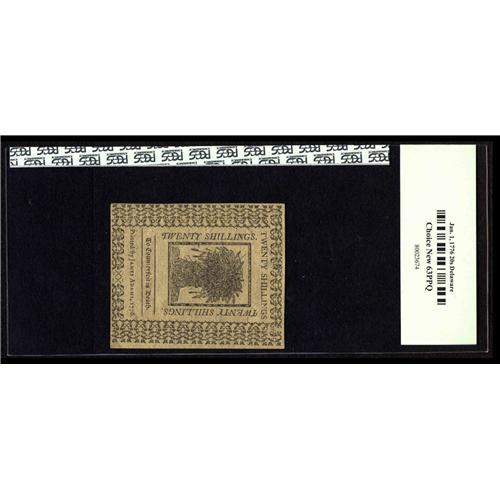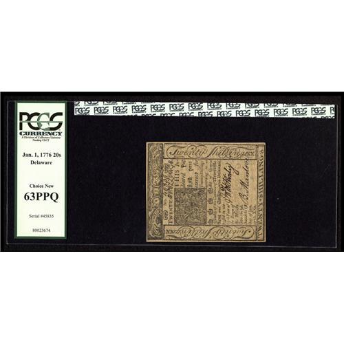 Delaware January 1, 1776 20s PCGS Choice New 63PPQ. Som Delaware January 1, 1776 20s PCGS Choice New