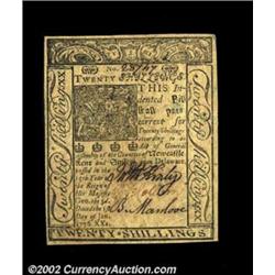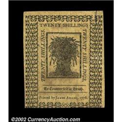 Delaware January 1, 1776 20s Very Choice New. A near-Gem example of this attractive Colonial issue..